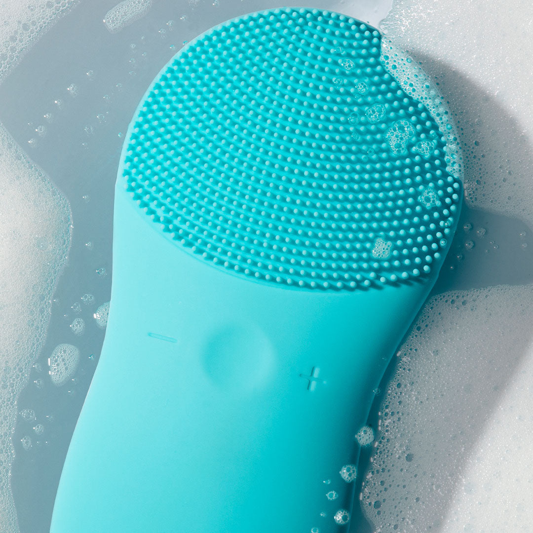 The silicone bristles and sonic vibrations combine to remove makeup residue, unclog pores, and enhance blood circulation