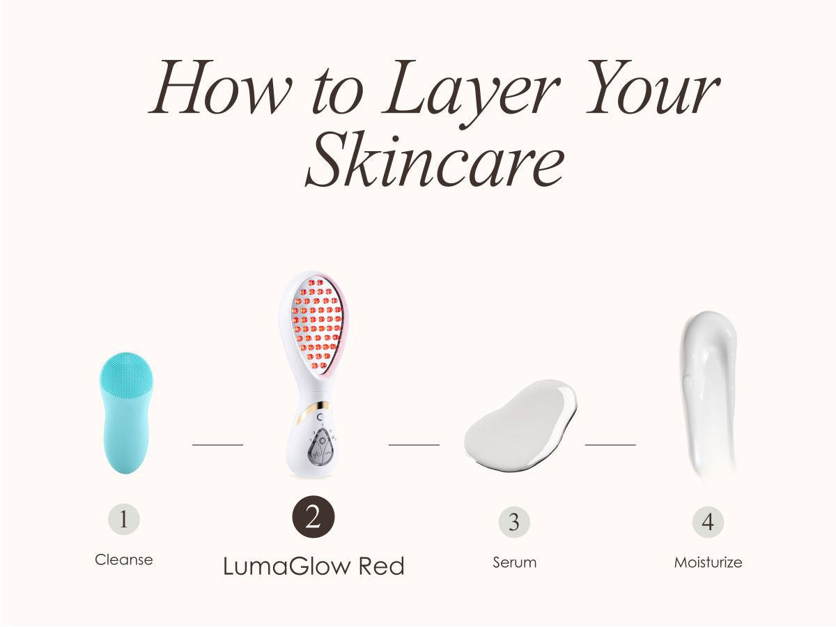 Use the LumaGlow on a freshly cleansed face. Follow up with your favorite serum. We recommend a hyaluronic acid serum for an ultimate hydration boost. For stronger actives like retinol and vitamin C it's best not to apply directly after treatment to prevent irritation. Just wait a couple of hours before applying